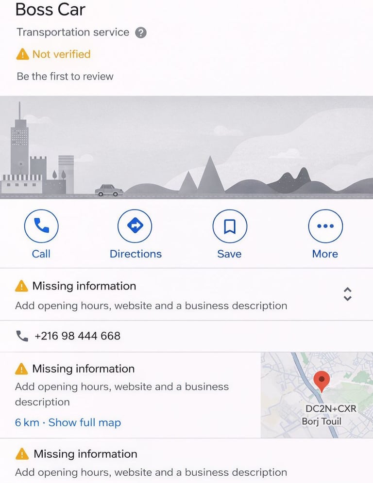 When Akram contacted us, his business was in serious danger. His Google Maps profile wasn't verified, and a scammer had been calling him repeatedly, claiming he could "help" fix the problem — for a large fee. The business was vulnerable to being hijacked completely. On top of that, with no professional website and an unprofessional online presence, he was losing 40–50% of potential customers who searched for car rentals online.